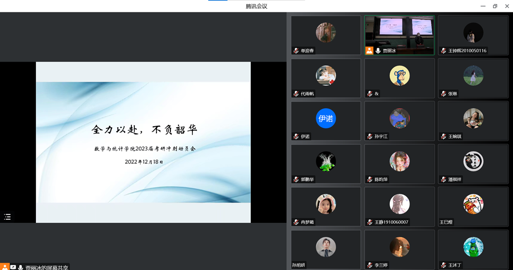 临近考研,为增强同学们的备考信心,缓解心理压力,传递温暖与祝福,12月18日中午,数学与统计学院在南阶教室举办了2023届学生考研冲刺动员会。会议以线上线下两种方式相结合。院党委书记史富强、院长韩小森、2019级辅导员贾丽冰到会为同学们加油打气,百余名考研学子参会。