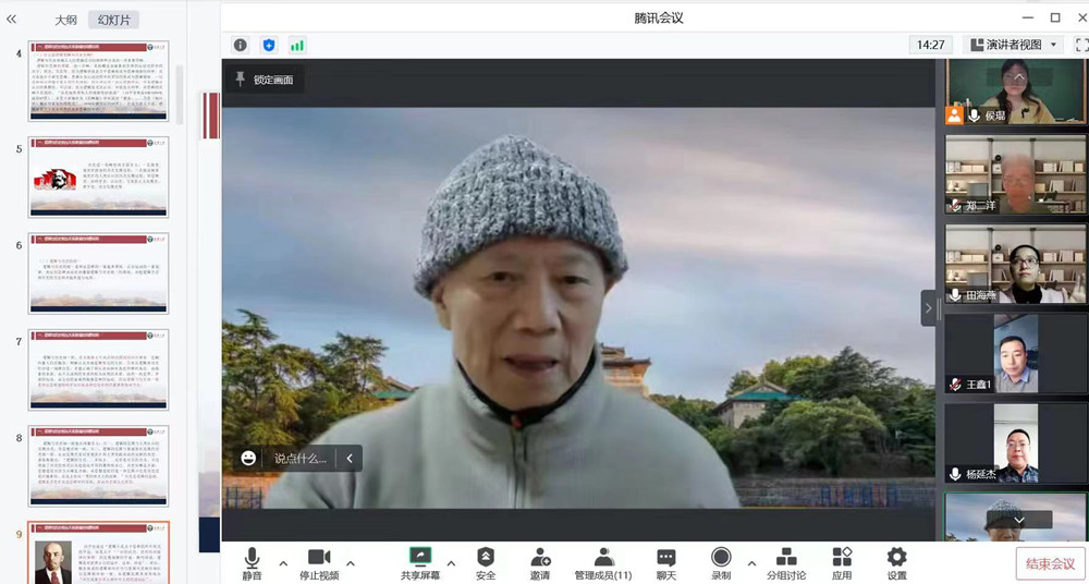 为加强博士生课程建设,提高课程育人水平,马克思主义学院特邀武汉大学教授、博士生导师、河南大学特聘马克思主义理论学科带头人梅荣政为博士生讲授《习近平新时代中国特色社会主义思想专题》课、《马克思主义前沿问题研究专题》课。两门课程通过腾讯会议线上方式进行,自11月22日开讲,历时六周,共计42学时。