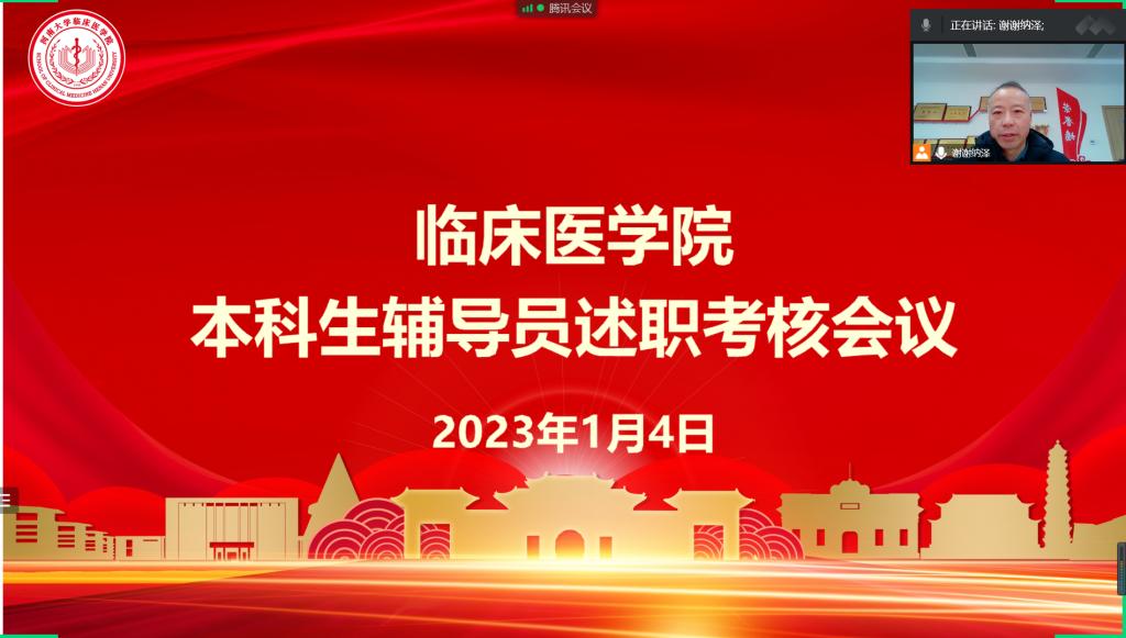 1月4日上午,临床医学院本科生辅导员述职考核会议通过腾讯会议平台召开。学院研究生、本科生辅导员,师生代表参加会议。