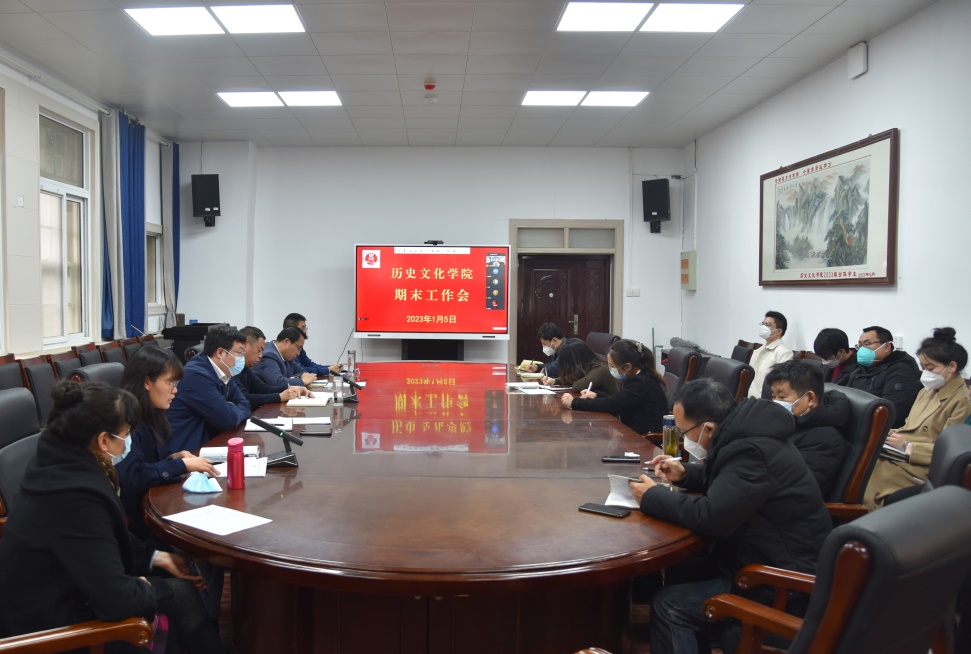 1月5日下午,历史文化学院通过线上线下相结合方式召开期末工作会议,对2022年工作进行回顾,对寒假和下学期主要工作进行安排布置。会议由学院党委书记张占党主持。