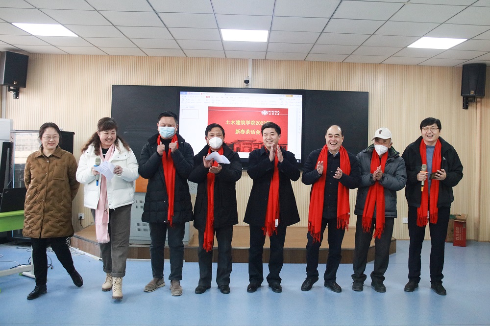 接下来,建筑工程系、路桥工程系、地下空间工程系、建筑系和城乡规划系等系的专业教师,在5位系主任的带领下以系为单位向大家拜年。随后,学院副院长党玉敬和行政人员,副院长张大伟和实验室负责人,副院长张建伟和科研机构(平台)负责人,全体辅导员,分别以不同的形式向大家拜年。现场开展的定点投掷羽毛球趣味活动,将气氛推向高潮,茶话会在老师们的欢声笑语中结束。
