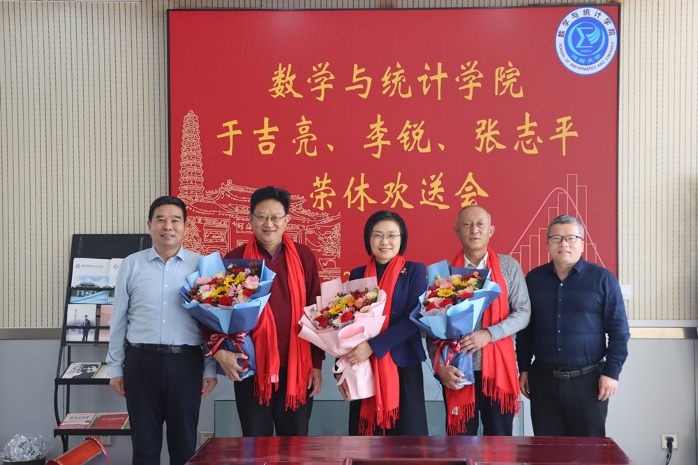 丹心育桃李,回首皆芳华。为充分表达学院对近期退休教职工的关怀与感谢,2月4日上午,数学与统计学院在二楼会议室举行教师荣休欢送会,欢送于吉亮老师、李锐老师和张志平老师光荣退休。院领导班子全体成员、数学教育系系主任和支部书记、院办主任参加欢送会。欢送会由院党委书记史富强主持。