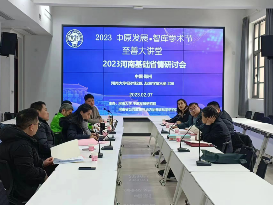 2月7日,中原发展研究院、河南省公共政策与地方治理软科学研究基地在河南大学郑州龙子湖校区友兰学堂举办基础省情研讨会,来自政府、企业和我校多个学院的专家学者济济一堂,研讨河南发展情况,共话高质量发展相关研究。