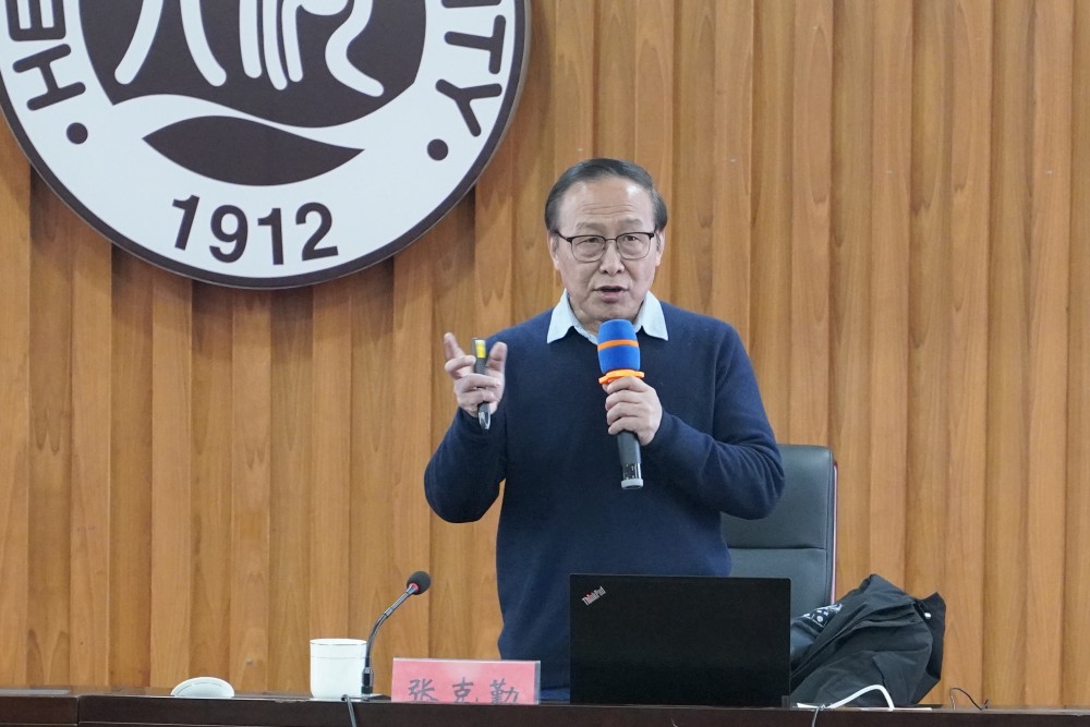 2月9日上午,由研究生院(党委研究生工作部)主办的河南大学研究生“至善大讲堂”系列讲座在我校金明校区行政楼249会议室举行。本期讲座邀请到中国科学院院士、植物病理学家、云南大学教授张克勤作《科学研究——从现象到本质的思考与实践》专题报告。生命科学学院、国家重点实验室等研究生培养单位师生以线下形式参加,其他研究生培养单位研究生通过线上直播形式参与。讲座由研究生院常务副院长苗琛主持。