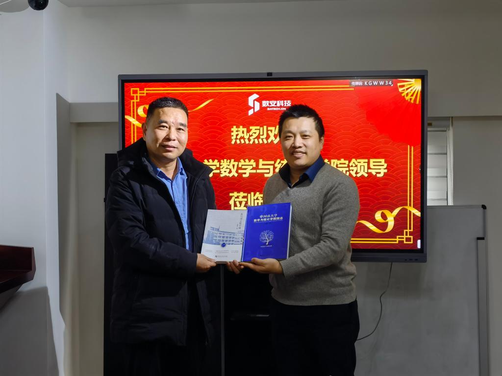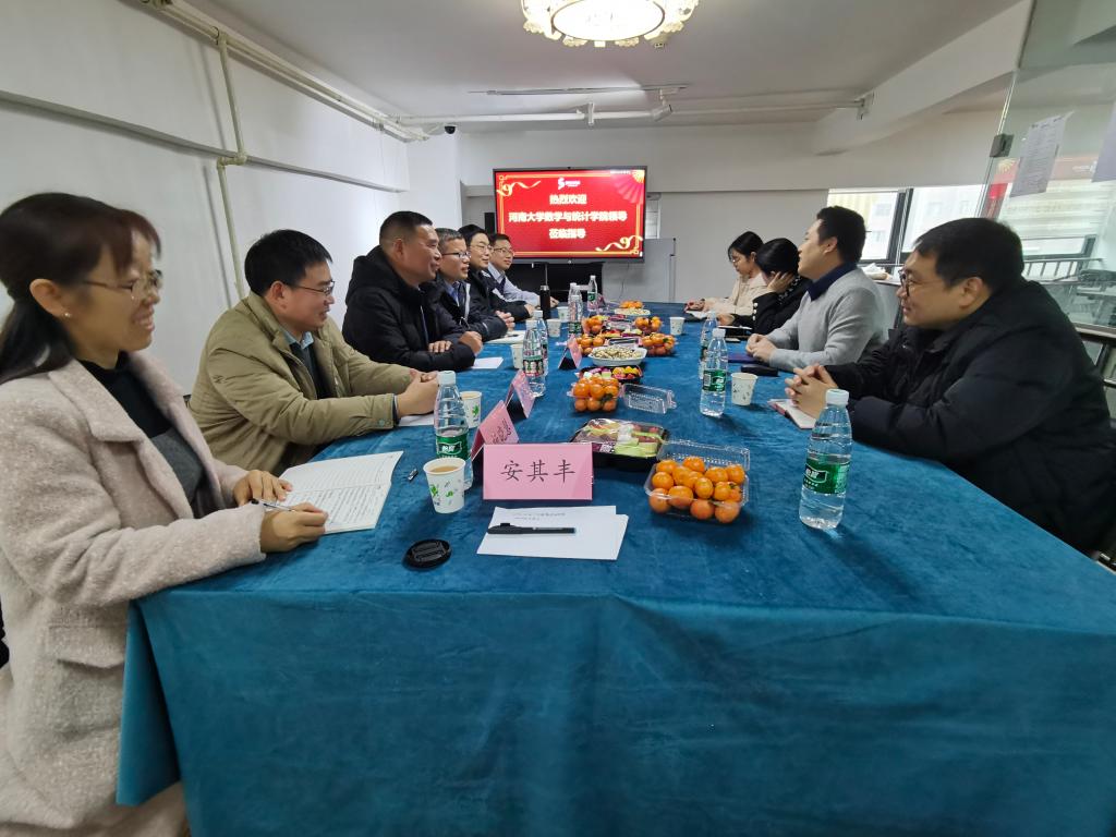 为贯彻落实教育部"访企拓岗促就业"行动,进一步促进数学和统计学科的“产学研用”深度融合。2月10日,数学与统计学院党委书记史富强、院长韩小森、副院长解俊山、省人工智能理论及算法研究中心主任杨晓慧、信息与计算科学系主任葛志昊、统计系主任郑晨、行政办公室主任安其丰一行赴河南数安科技有限公司、河南省档案馆参观调研,就深化院企合作、人才培养、产教融合等方面进行了洽谈交流。