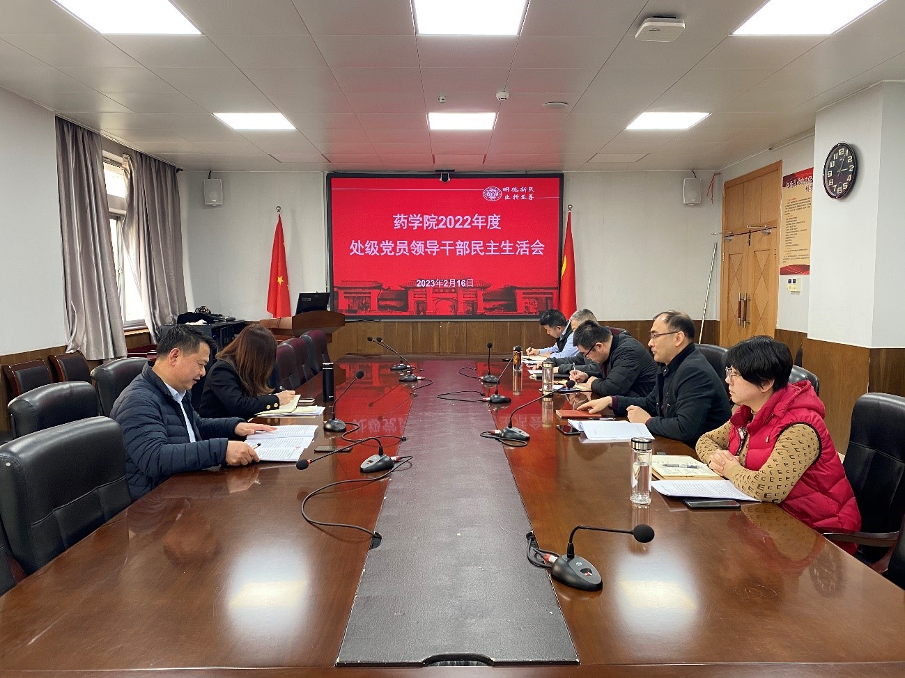 2月16日下午,药学院党委在学院会议室召开2022年度处级党员领导干部民主生活会。药学院处级党员领导干部全体参会。会议由学院党委书记梁刚主持。