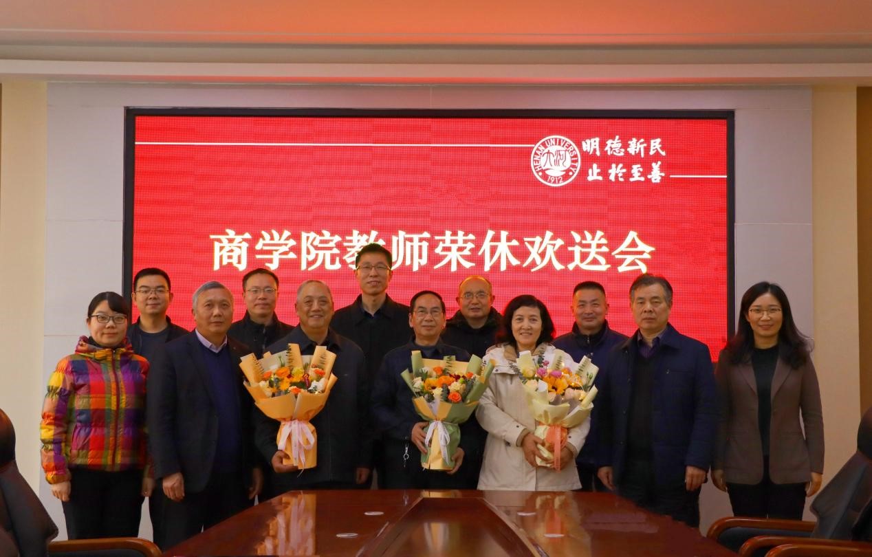 2月16日下午,商学院在学院201会议室召开教师荣休欢送会。杜乃涛、付雪成、刘隽华等3位荣休教师,学院领导班子成员,部分教师代表参会。欢送会由副院长王志强主持。