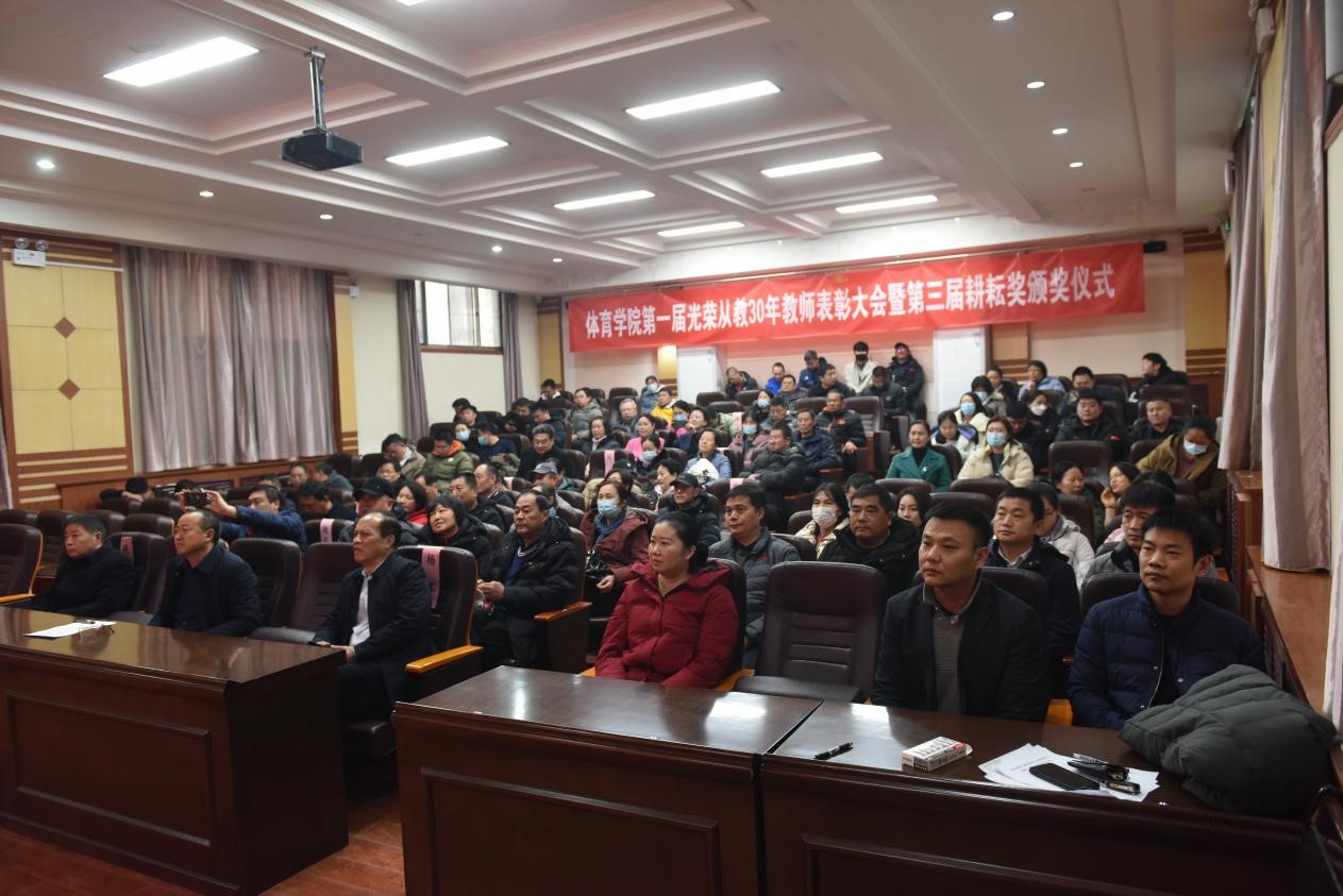 为充分展现广大教师爱党爱国爱校、立德树人、自信自强的精神风貌,提高教师职业荣誉感、满足感与获得感,大力宣传教师坚守岗位、默默奉献的崇高精神,积极营造尊师重教的浓厚氛围,激发青年教师为教育事业奉献青春的热情。体育学院于2月16日在电教室举办了第一届光荣从教30年教师表彰大会暨第三届耕耘奖颁奖仪式。活动上对学院从教30年以上的在岗一线教师们进行表彰,同时为2022年荣休的教师们颁发了耕耘奖。活动仪式由体育学院院长周珂主持。