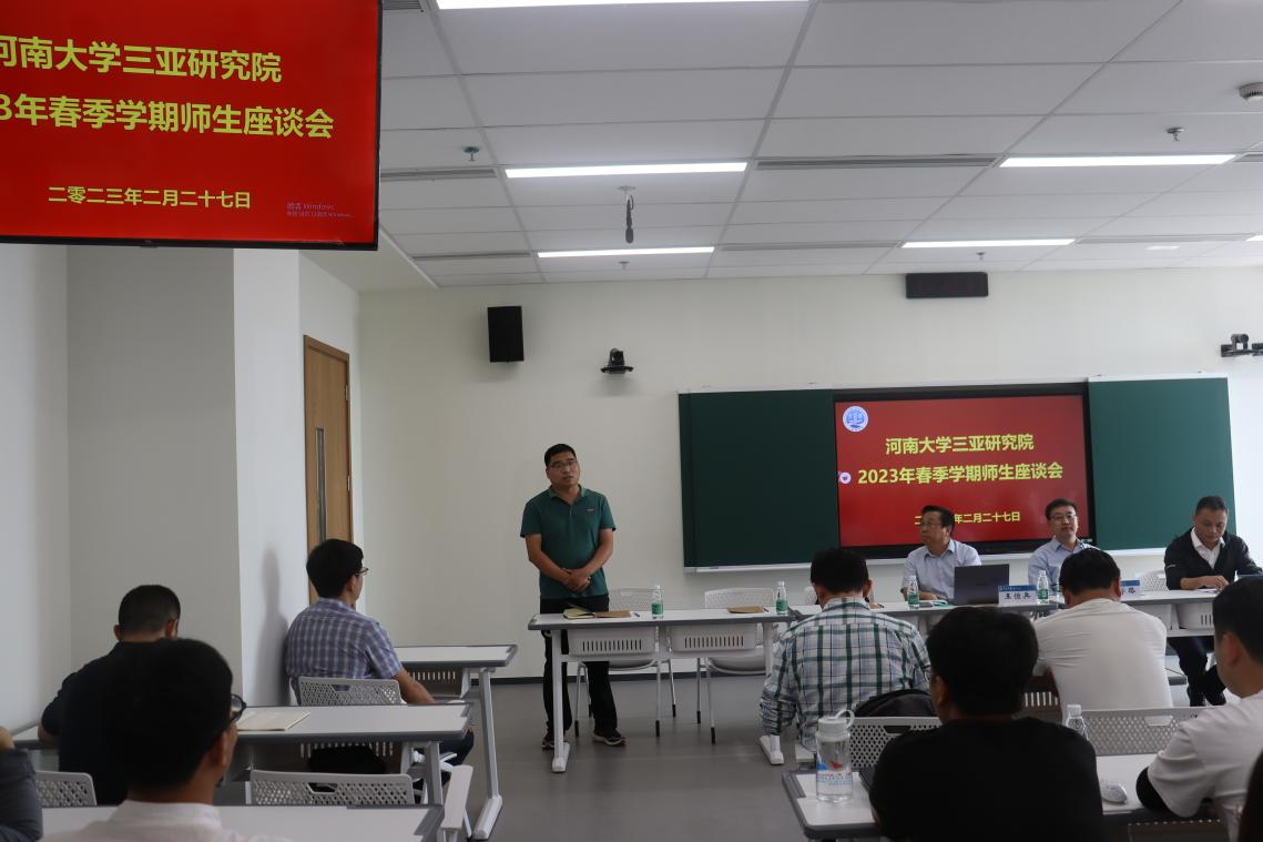 2月27日下午,三亚研究院在崖州湾科技城创新研学谷教学区508教室举行2023年春季学期师生座谈会。河南大学副校长、三亚研究院院长王学路教授,三亚研究院执行院长王恒兵,研究院在琼师生员工参加会议。座谈会由研究院副院长陈哲主持。