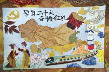 图14 落叶剪贴画《学习二十大,奋斗新征程》郑红霞王博雅陈江萍