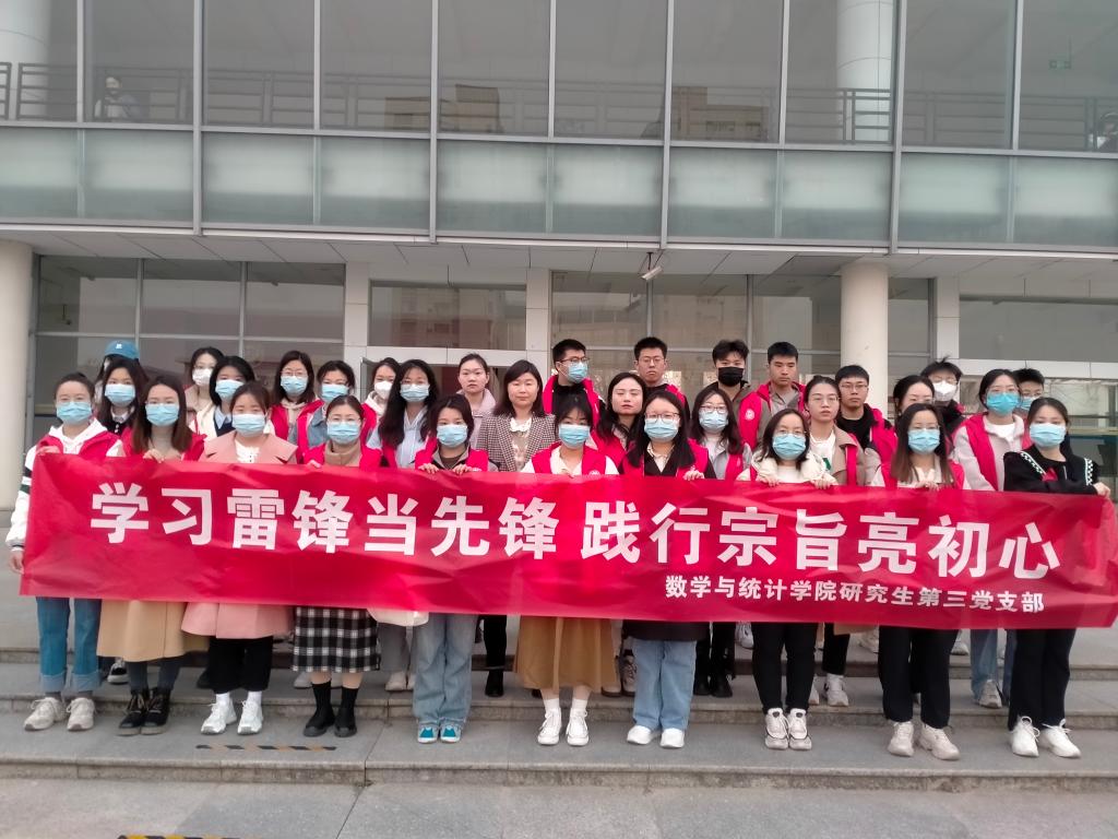今年是毛泽东等老一辈革命家为雷锋同志题词60周年,为进一步弘扬和传承雷锋精神,加强校园文化建设,以实际行动学习宣传贯彻党的二十大精神,数学与统计学院研究生第三党支部开展“学习雷锋当先锋 践行宗旨亮初心”党日活动,进行规范车辆摆放、校园清洁等志愿服务。