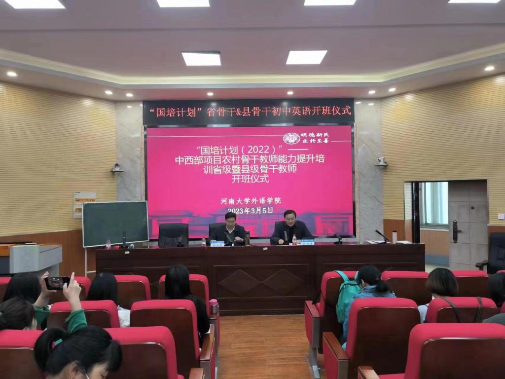 3月5日上午,“国培计划(2022)”中西部项目农村骨干教师能力提升培训(初中英语)省级骨干&县级骨干培训在河南大学外语学院北楼三厅召开。外语学院院长杨朝军、副院长赵涛涛出席了开班仪式,仪式由赵涛涛主持。