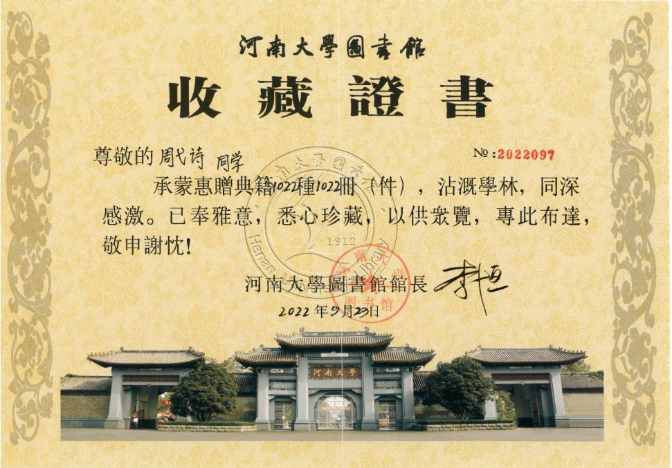 近日,临床医学院收到一封来自我校图书馆的感谢信,感谢学院“周弋诗同学为校图书馆捐出的1022册图书,感谢周弋诗同学及家人书香永存,惠泽千秋的捐赠义举!”