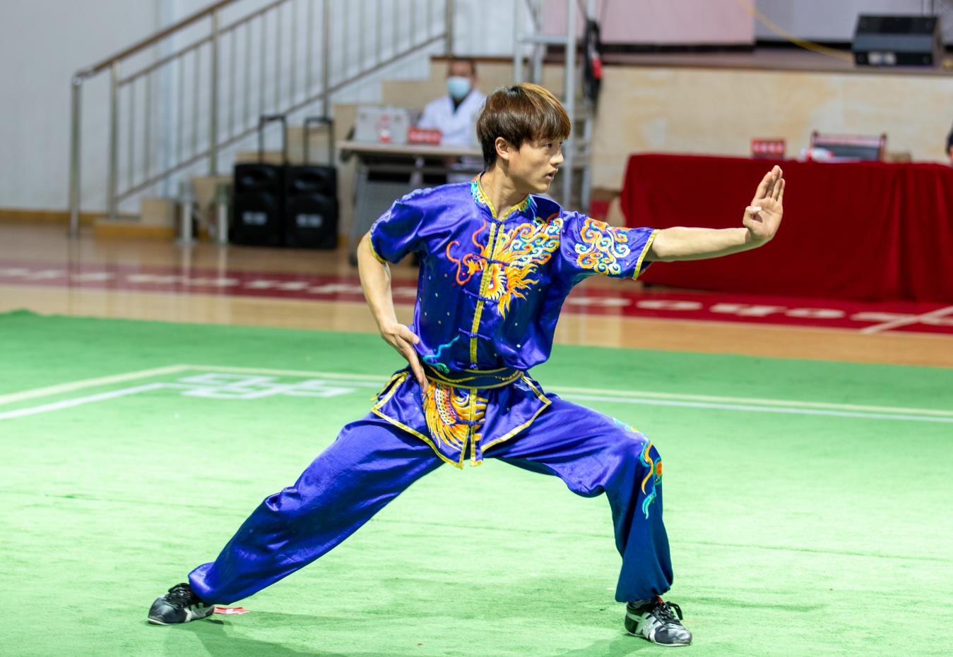 比赛中,武术学院学子展现出非同凡响的风采,用充满活力的竞技状态将“精忠报国,一生所向”的大赛主题展现得淋漓尽致。武术学院学子不论拳术还是器械,动作舒展大方、刚劲有力,共获得23个一等奖、23个二等奖、11个三等奖。武术学院获得优秀组织奖和突出贡献奖。