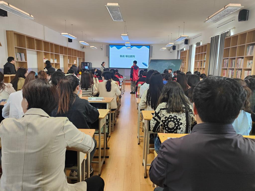 本次活动由杨红朝老师主持,河南大学附属中学副校长李俊义出席。大家首先观摩学习了优秀数学教师李慧璇的展示课《备战 等比数列》。李老师通过复习学案、学生自主练习、小组讨论、观察归纳等方法使学生充分理解知识并学以致用,在授课的同时注重培养学生的独立思考能力,促进学生逻辑推理、数学运算等核心素养的发展。