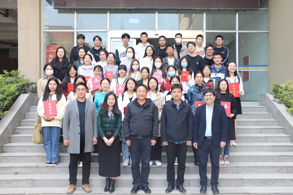赵雪宣读“瑞通杯”河南大学第十九届大学生学术节获奖名单,与会领导为获奖同学颁发证书和奖品。