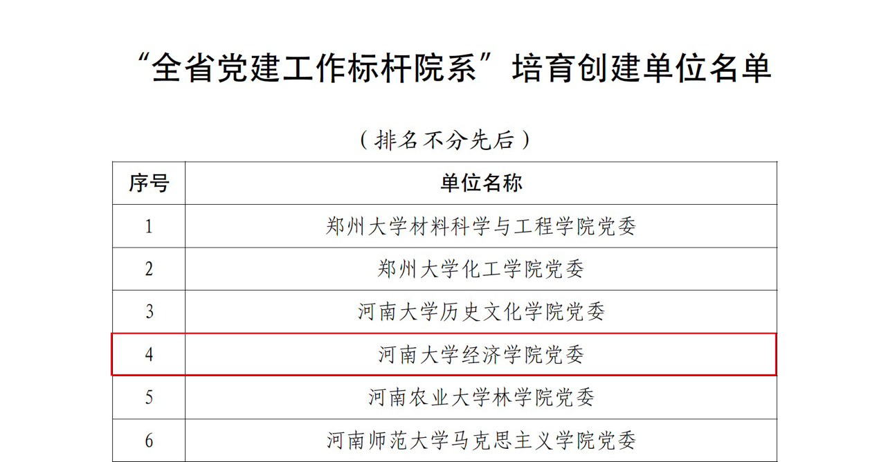 近日,省委教育工委公布了全省高校党建工作强基引领“三级联创”系列活动评选结果,经济学院党委入选“全省党建工作标杆院系”培育创建单位,经济学院党委行政党支部申报的“‘一核两翼’:全面提升新时代高校党支部建设质量”工作案例入选高校基层党支部抓党建创新典型案例奖。