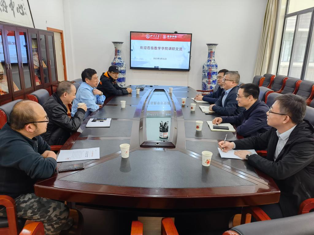3月31日下午,河南大学数学与统计学院一行5人在院长韩小森带领下赴四川大学数学学院调研交流。四川大学数学学院院长王宝富,副院长连增、寇辉,四川国家应用数学中心管理办公室主任邓科等热情接待了调研组一行并进行了座谈交流。