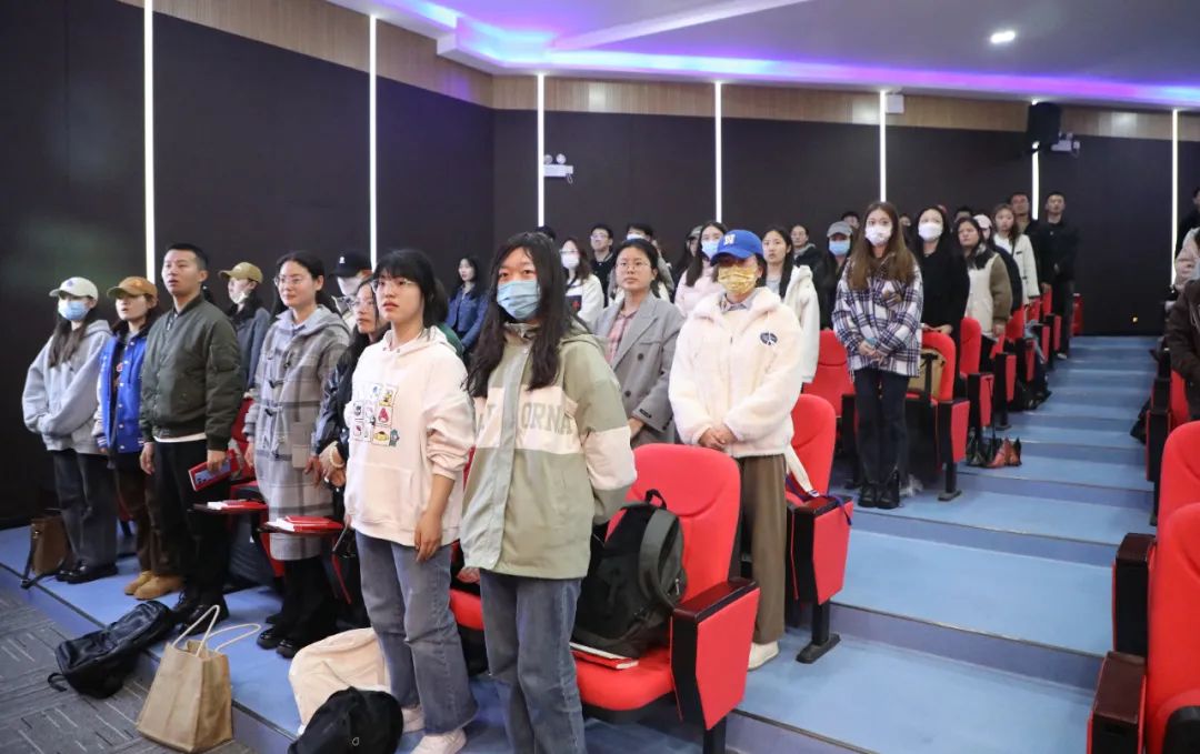 仪式伊始,全场师生起立,齐唱国歌。
