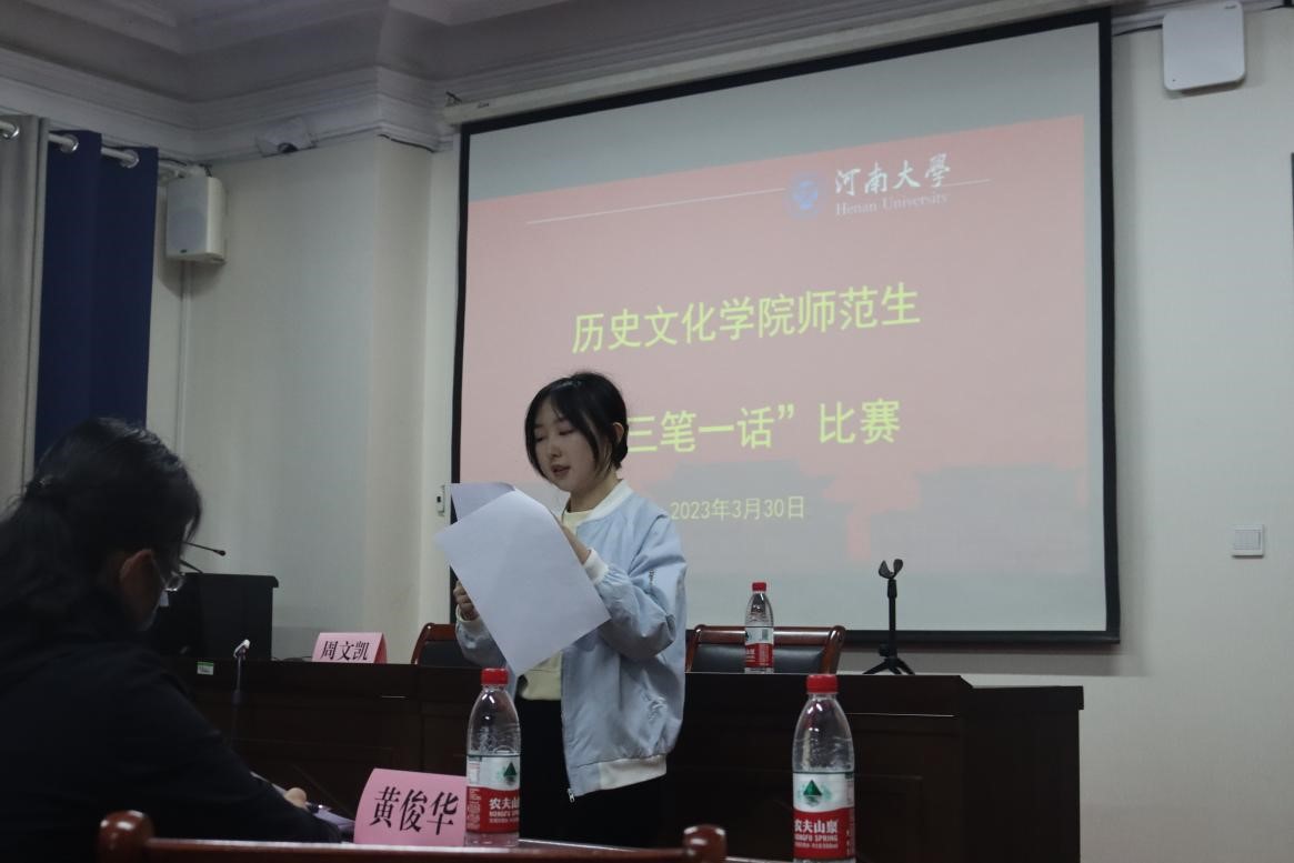 3月30日下午,河南大学历史文化学院在学院一楼中学历史教学法实验室、三笔字实验室举办了“三笔一话”师范教学技能比赛。学院党委副书记周文凯、副院长闵祥鹏出席比赛,学院教师齐德舜、谢佳芮、黄俊华、熊钿、王博凯担任本次比赛的评委。