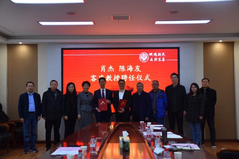 与会全体人员一并观看了河南大学校庆宣传片《大学之道》,共同感悟学校百年发展历程和精神内涵、价值所在。刘波代表学校向校友肖杰、陈海友及其夫人的到来表示热烈欢迎,对他们长期以来关心关注和支持学校事业发展表示感谢,对他们干事创业的成绩和精神表示由衷敬意。王性玉从师资队伍建设、学科发展成就、人才培养质量等方面全方位介绍了学院事业发展全貌。陈海友、肖杰分别从个人就业、创业以及事业转型等方面介绍了个人成长历程和各自企业的发展现状。刘波同志向陈海友、肖杰颁发了河南大学商学院客座教授聘书。随后,与会人员进行自由交流,双方就人才培养、社会服务等方面的合作达成初步共识。