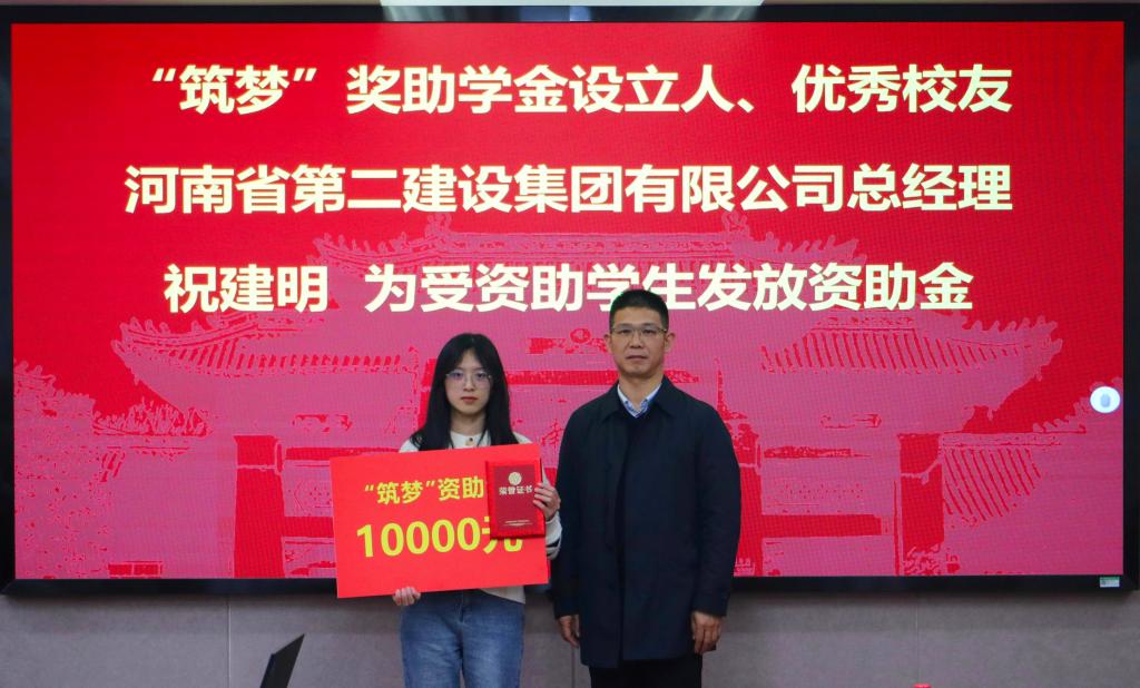 李社教在致辞时讲到,土木建筑学院“筑梦”奖助学金,是由学院1994级优秀校友祝建明,为庆祝河南大学110周年校庆而捐资设立的河南大学院级专项奖助学金,旨在确保家庭经济困难学子圆梦大学,激励其求知探索、刻苦钻研、奋发有为、争做栋梁,成为有益于国家和社会的土木建筑类专门人才。他代表土木建筑学院对祝建明总经理一行参加首期获奖助学生颁奖仪式表示热烈的欢迎!他表示,校友是学校的宝贵资源,遍布全球的河大校友,传承着河大的文脉,传承着河大的精神。“风停了,雪化了,爱已发芽了。来了,走了,爱已开花了。冬去了,春来了,爱已长大了。”优美的旋律,萦绕百年。爱,已在学院学子心中扎根、发芽,开花、结果;爱,已在广大校友心中延续、传承。他希望获奖助的同学把这份爱牢记在心,转化成刻苦求学、勇攀高峰的动力,以优秀校友为榜样,在奋斗与拼搏中锤炼本领,努力成为堪当民族重任的时代新人。