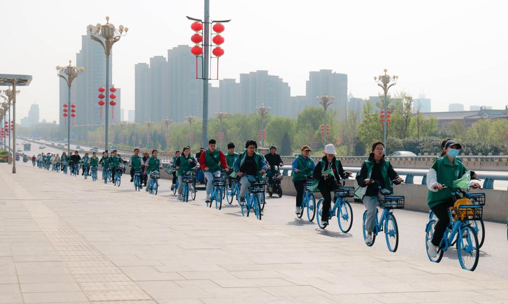 清晨,学生们朝气蓬勃地在河南大学金明校区西门集合,并拍摄合照。在工作人员交代完注意事项后,开封骑行活动正式开始。骑行过程中,队伍排列有序,平稳前行,汇成了一道靓丽的风景线。顺利抵达汴西湖后,学生们有序进入银滩,并秉持着绿色环保的生态理念,自觉进行了垃圾清理工作,把塑料袋、废纸等垃圾进行收集后分类放进垃圾桶内,用实际行动为营造美丽环境作出贡献。活动最后,伴随着欢声笑语骑行队伍有序返回学校。参与骑行的成员说:“今天不只以骑行的方式锻炼了身体,更让我感受到环保的重要性,今后我也将持续践行低碳环保的生活理念,为保护环境贡献自己的一份力。”