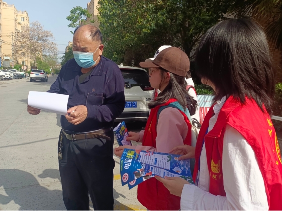 四月的风,揉揉拂面,和煦爽心。为增强大学生服务社区、奉献社会的意识,4月9日下午,商学院青年志愿者协会前往龙亭区梁苑街道阳光社区开展“反电信诈骗”宣传活动。志愿者们身穿象征着奉献的红色马甲,手拿精心制作的反诈宣传页,以饱满的精神状态为阳光社区的居民们宣传反电信诈骗的有关知识。
