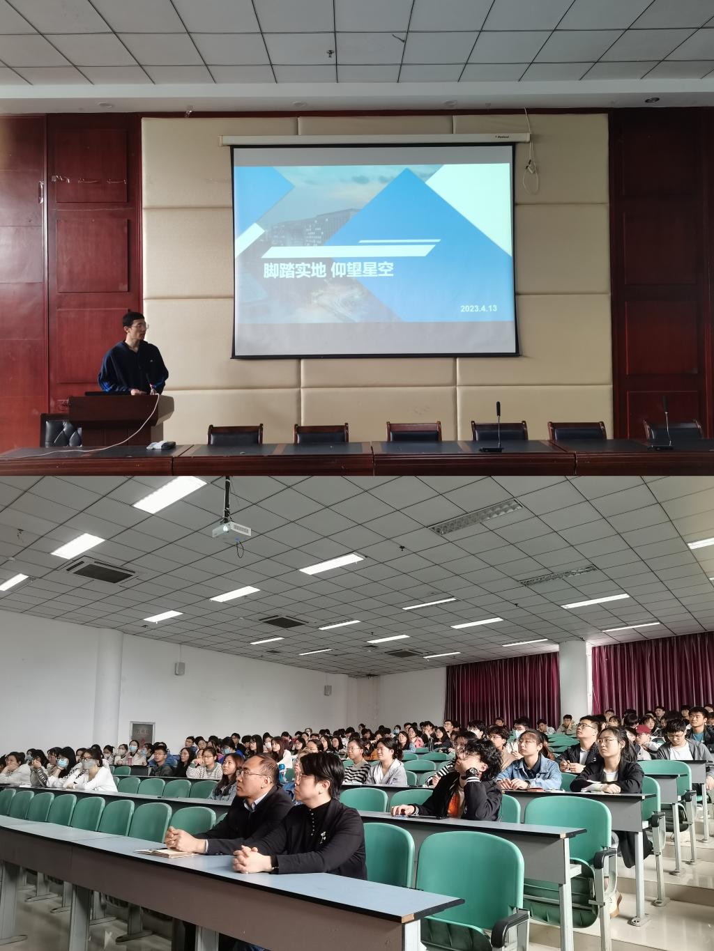 杨丰合以“仰望星空,脚踏实地”为主题作报告,以“找差距”开篇,以自己的求学经历,用实际案例从态度、视野、努力程度、毅力四个方面讲述了优秀大学生的个人品质,鼓励大家以此为榜样,端正态度,明确目标,努力进取。随后,以“聊未来”的方式,详细介绍了优秀高校在资源、设施、经费等方面的优势,建议选择考研的同学要结合实际情况,根据自身能力,选择合适院校。对于选择直接就业的同学,杨丰合结合自身经历,从工作环境、薪资待遇各个方面介绍了公务员、事业单位以及国企、外企等工作岗位的情况。最后杨丰合热心解答了同学们关于升学就业方面的一些疑惑,为同学们的未来规划提供了更加全面的建议。