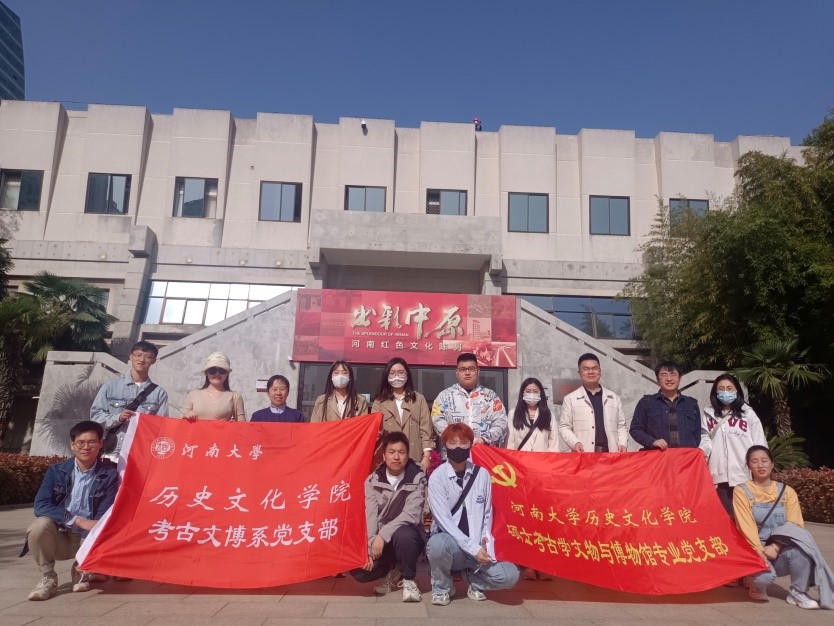 为深入学习贯彻党的二十大精神,扎实推进习近平新时代中国特色社会主义思想主题教育,4月15日,省级样板支部历史文化学院考古文博系教师党支部与硕士考古学文物与博物馆专业学生党支部联合开展“弘扬中原文化,赓续红色血脉”主题党日活动,师生党员共同到河南博物院参观学习“出彩中原——河南红色文化陈列展览”。