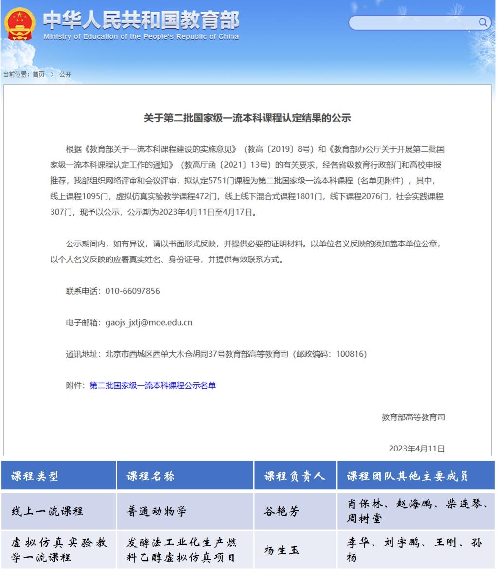 据悉,生命科学学院截止目前已建成国家级一流本科课程4门、省级一流本科课程14门、省级课程思政样板课程3门、省级精品在线开放课程9门。