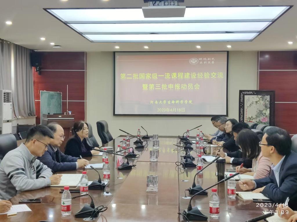 为持续提升课程建设质量、打造一流课程,4月18日,生命科学学院召开第二批国家级一流课程建设经验交流暨第三批申报动员会。生命科学学院副院长赵海鹏出席会议,生命科学学院第二批国家级一流本科课程负责人谷艳芳教授、杨生玉教授,各系(室)主任、省级一流本科课程骨干成员等参加,会议由教务办公室主任张要军主持。