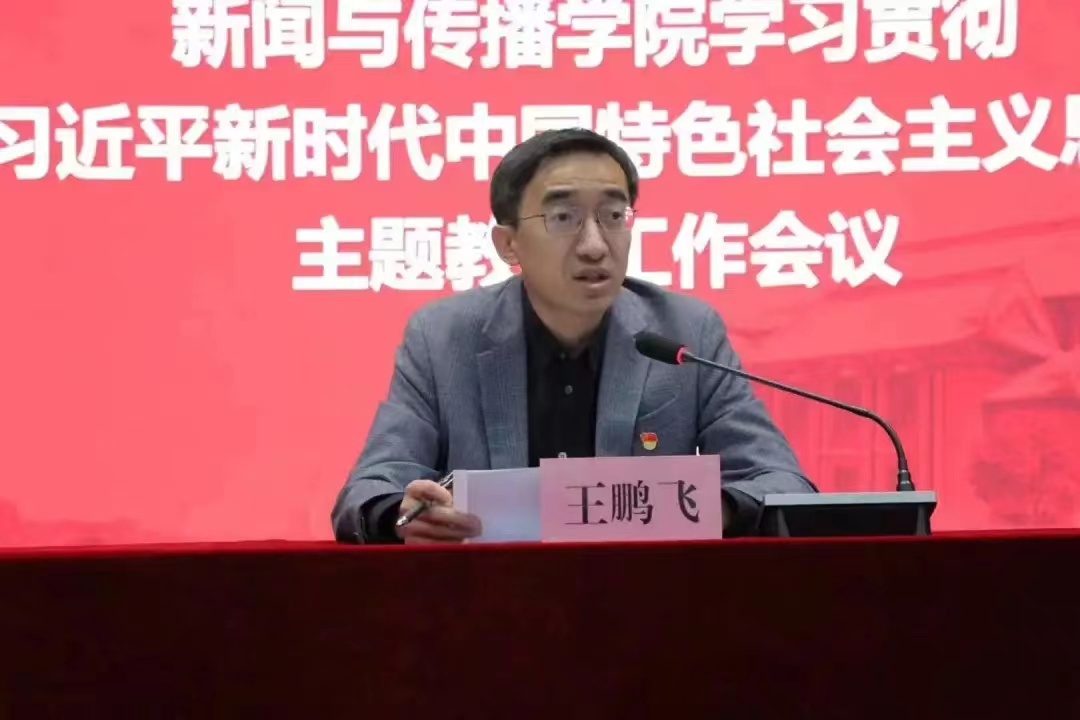 新闻与传播学院院长、党委副书记王鹏飞对本次会议进行总结。他针对学院主题教育工作安排提出三点要求:一要提高政治站位,围绕目标,推动落实;二要强化理论学习,多思多想,学深悟透;三要深入调查研究,求真务实,学做结合。