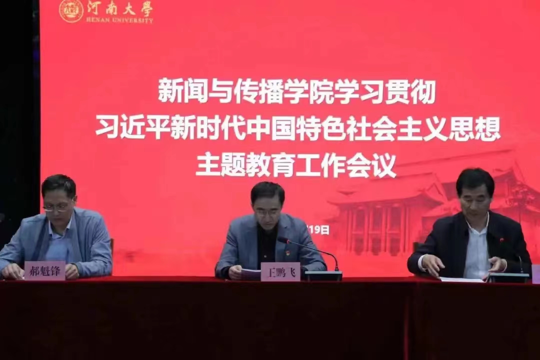 4月19日上午,学习贯彻习近平新时代中国特色社会主义思想主题教育工作会议于新闻与传播学院科技馆二楼综合报告厅举行。按照党中央部署、省委要求和学校相关工作安排,新闻与传播学院全体领导班子成员、组织员、全体师生党员,发展对象及入党积极分子代表参加。会议由院长、党委副书记王鹏飞主持。