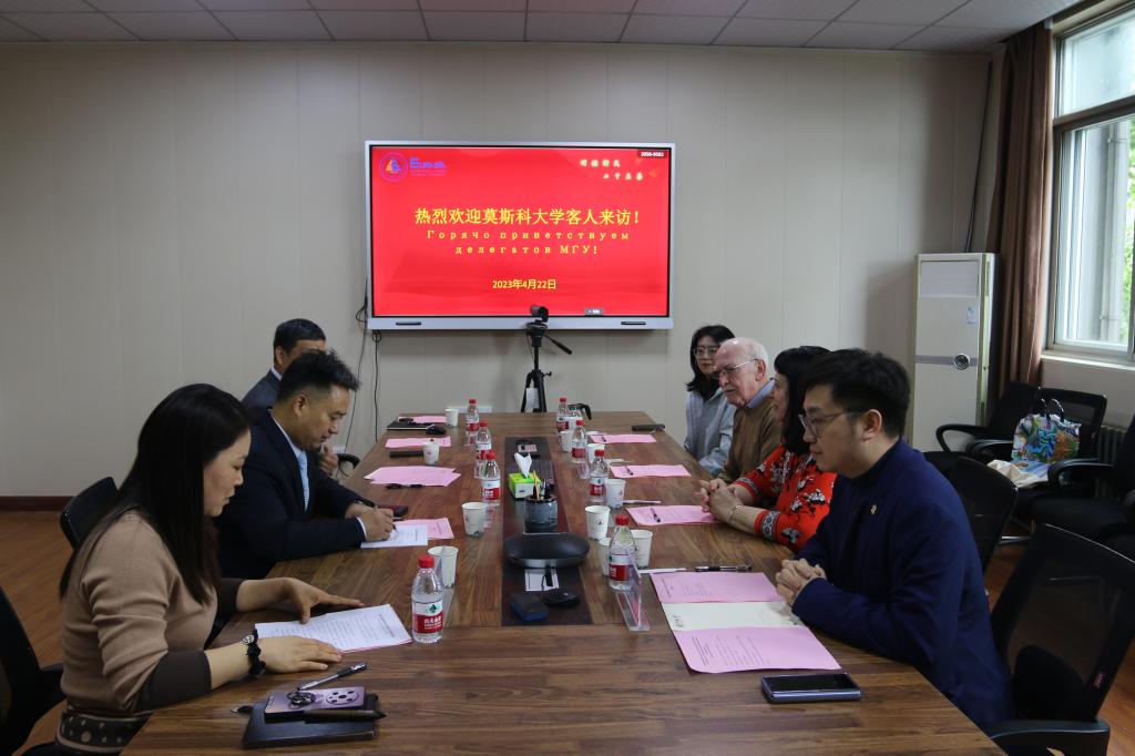 4月22日上午,莫斯科大学国家管理学院教授维杜塔·埃琳娜·尼古拉耶芙娜、俄罗斯维杜塔战略研究学院国际事务副院长莱斯利·罗伯特,莫斯科大学中国学联主席、河南大学欧亚国际学院校友高牧洋一行访问欧亚国际学院。欧亚国际学院党委书记王振存教授、国际汉学院教授赵成新在学院二楼会议室会见了来宾。副院长苏芳芳主持会议。
