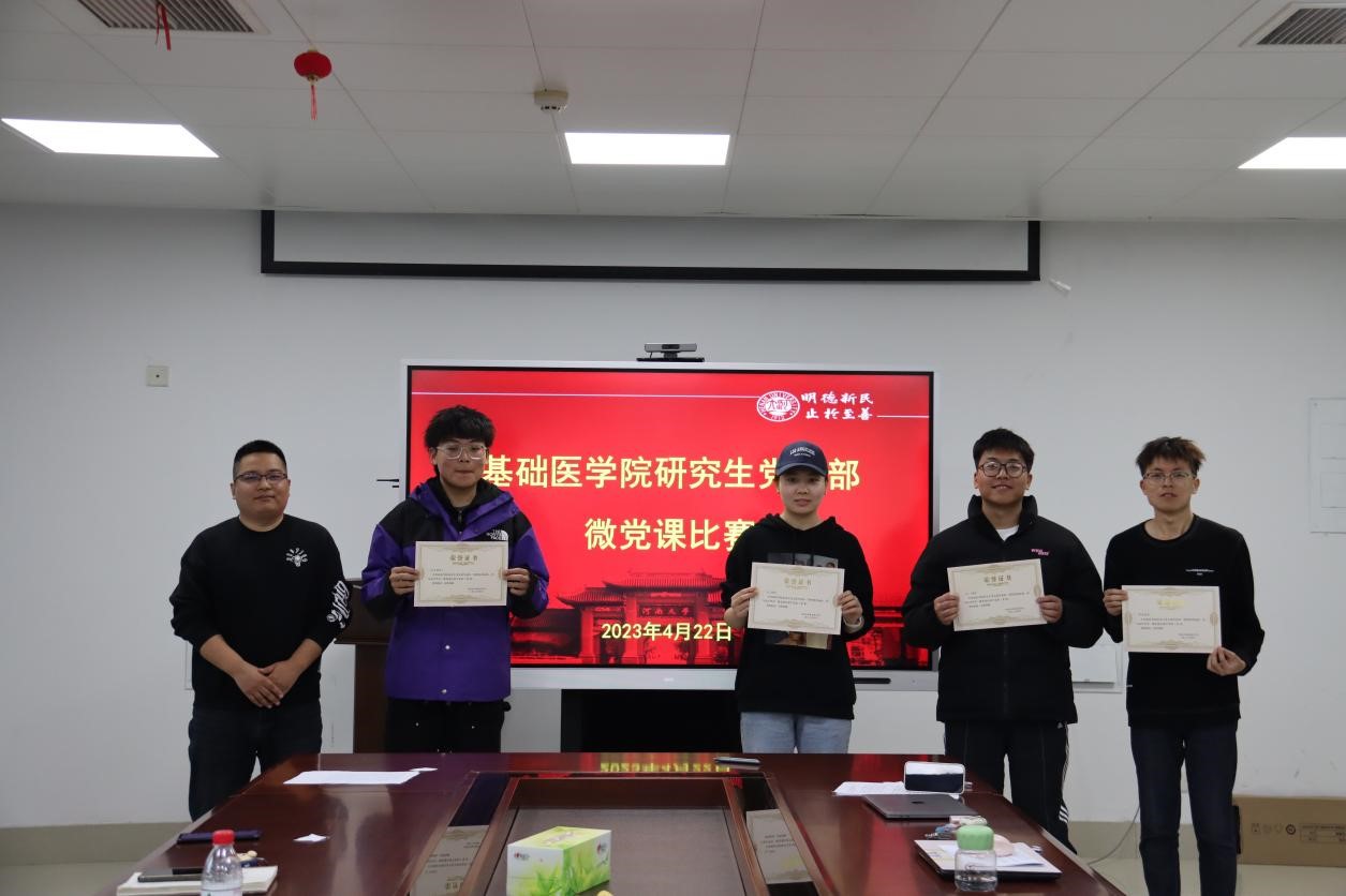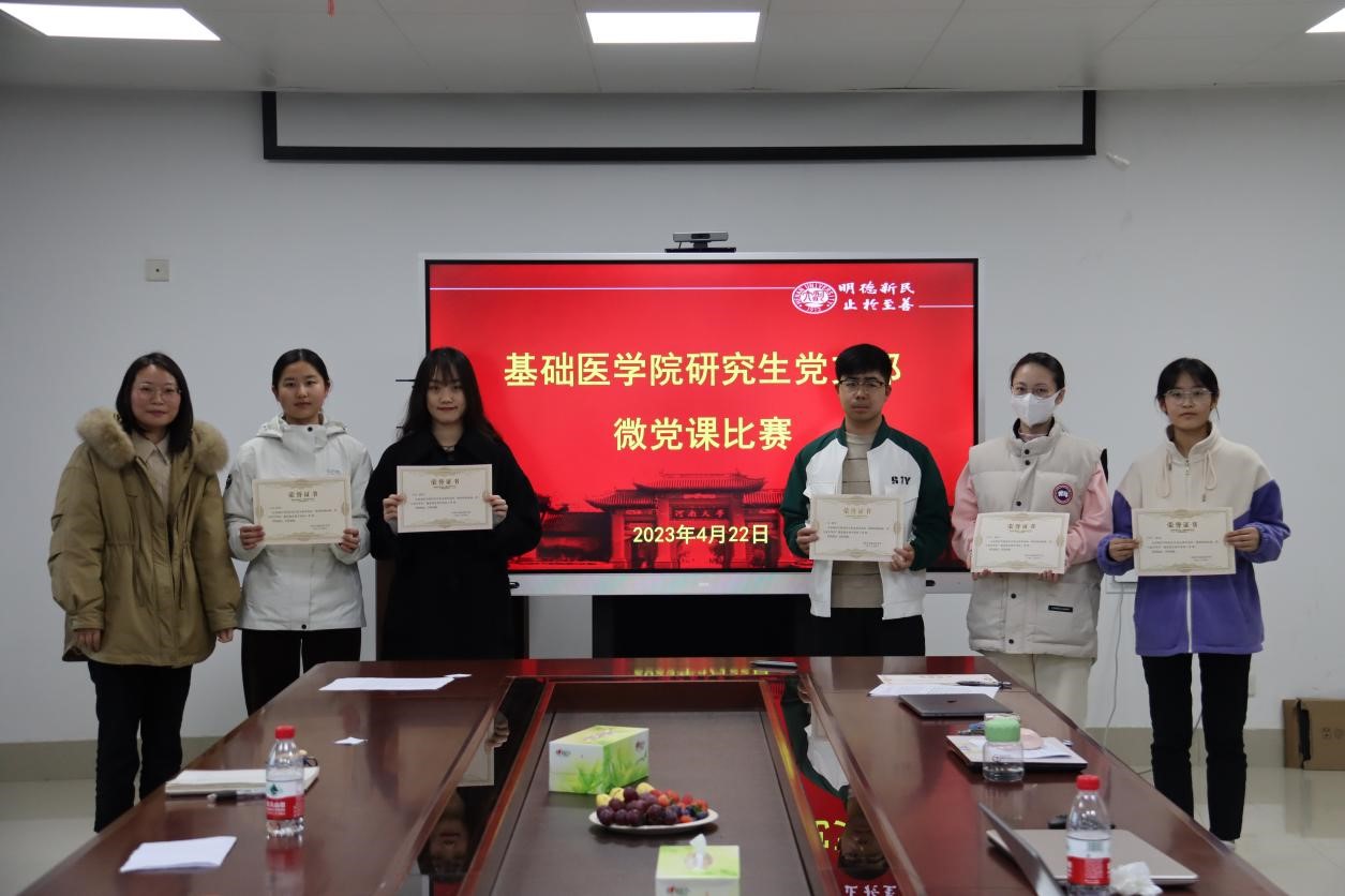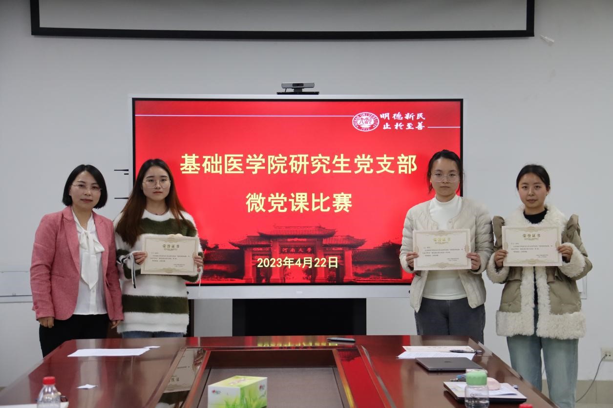 颁奖结束后,司伟荣与同学们交流了比赛感受,她认为此次微党课比赛选手精神饱满、准备充分、主题鲜明、内容丰富,既有动人的故事,又有理性的启迪,既有最新的理论,又有生动伟大的实践,是一场高质量的比赛。她谈到,中国共产党的红色血脉是中华儿女的根,是当代青年的魂,是同学们奋进前行的底气,希望同学们主动发扬党的优秀传统,赓续精神血脉,把个人理想融入到新时代健康中国、科技强国等国家发展大局中,用所学的专业知识,为祖国医疗卫生事业发展和河南大学“双一流”建设事业以及学院各项事业的快速发展作出自己的积极贡献。
