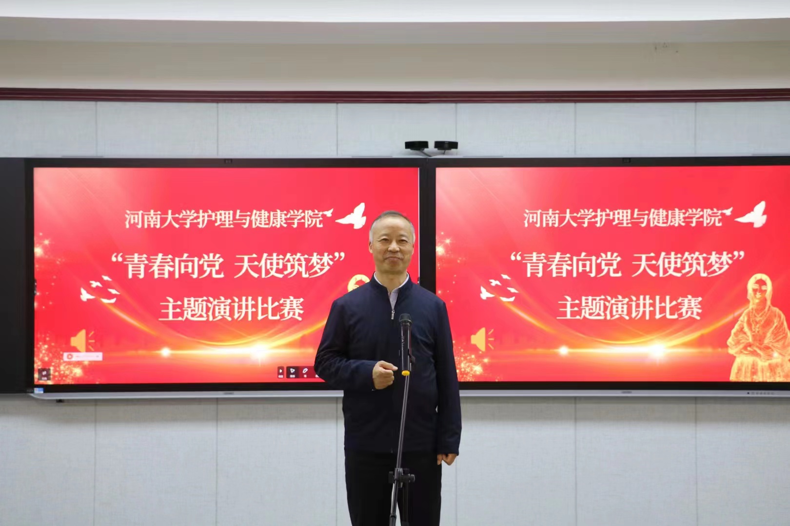 为深入学习贯彻党的二十大精神,弘扬南丁格尔救死扶伤的人道主义情怀,引导青年红心向党,迎接即将到来的5·12国际护士节,护理与健康学院于4月25日晚在学院三楼示教室举办“青春向党·天使筑梦”主题演讲比赛。护理与健康学院党委书记谢纳泽,党委副书记刘闯,院团委负责人、研究生和本科生辅导员应邀参加。