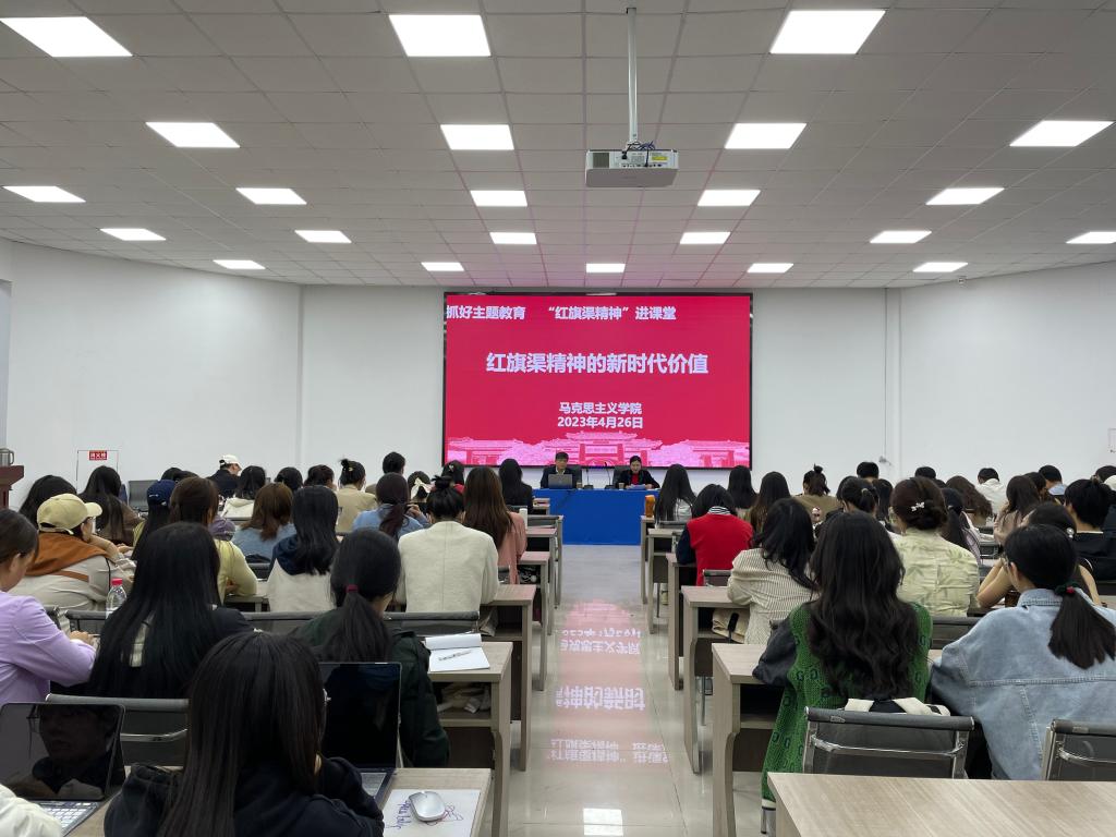 为深入开展学习贯彻习近平新时代中国特色社会主义思想主题教育,贯彻落实习近平总书记视察河南安阳重要讲话精神,更好地用红旗渠精神培育时代新人。4月27日下午,林州市人大党组副书记、人大常委会副主任王献青应邀为马克思主义学院师生作题为“红旗渠精神的新时代价值”的主题报告。本次报告会由院党委书记彭绪琴主持,学院百余名师生参加。