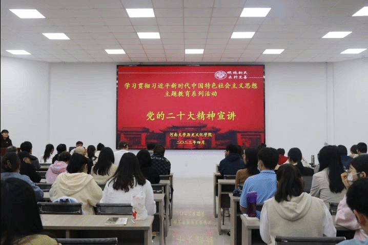 为扎实推进学习贯彻习近平新时代中国特色社会主义思想主题教育走深走实,4月27日下午,历史文化学院邀请马克思主义学院刘德定教授在明伦校区科技馆一楼报告厅作党的二十大精神宣讲会。学院全体教工党员、学生党员代表和入党积极分子参加。宣讲会由历史文化学院党委委员、副院长李竞艳主持。