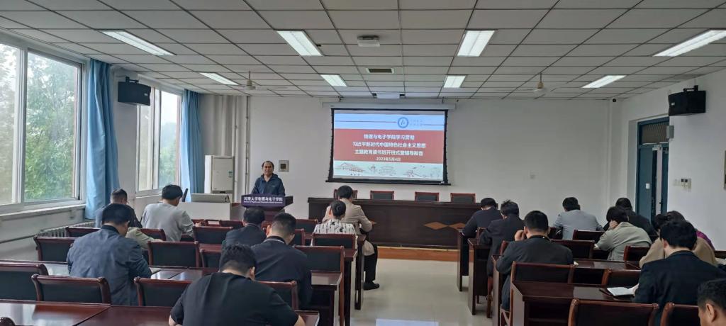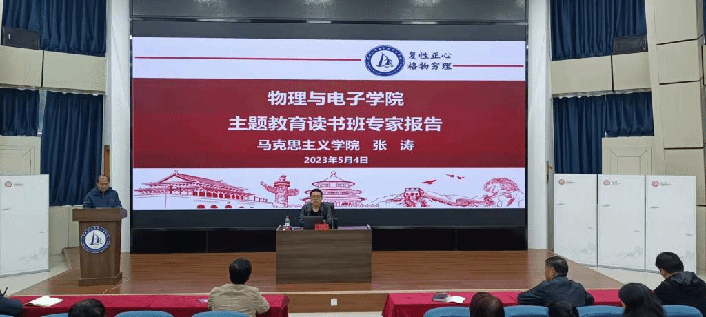 在读书班开班式暨首场辅导报告上,学院党委书记张慧作题为《坚持不懈用习近平新时代中国特色社会主义思想凝心铸魂 奋力开创物理与电子学院高质量发展新局面》的辅导报告。他表示,要全面学习领会习近平新时代中国特色社会主义思想的科学体系、核心要义、实践要求,全面把握习近平新时代中国特色社会主义思想的世界观、方法论和贯穿其中的立场观点方法,深刻领悟“两个确立”的决定性意义,切实增强对党的创新理论的政治认同、思想认同、理论认同、情感认同,在思想上政治上行动上同以习近平同志为核心的党中央保持高度一致。他要求,一要夯实理论功底,以理论清醒保证政治坚定;二要学懂弄通做实,以理论提升引领创新发展;三要坚持全面系统,以发展成效检验学习成果。