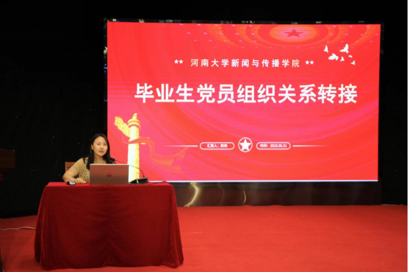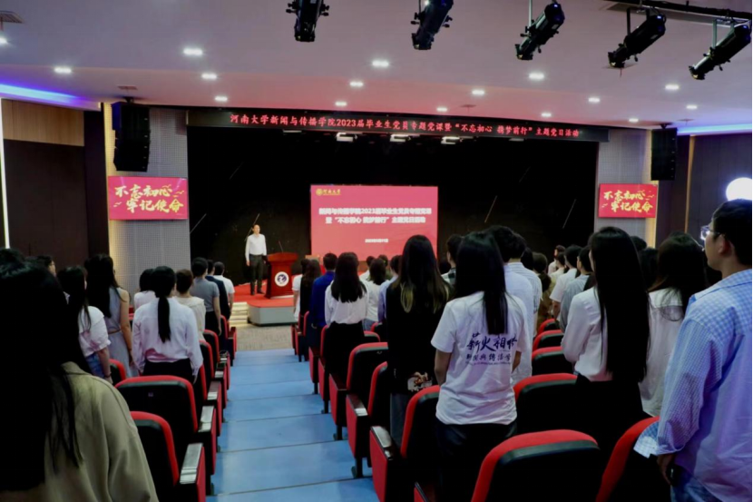 为全面贯彻落实党的二十大精神,深入开展学习贯彻习近平新时代中国特色社会主义思想主题教育,加强毕业生党员的思想教育,5月31日下午,新闻与传播学院于明伦校区科技馆二楼报告厅开展2023届毕业生党员专题党课暨“不忘初心,携梦前行”主题党日活动。新闻与传播学院党委书记乔石豪、党委副书记郝魁锋出席,党委办公室主任陈琳、研科办主任栗江豪、团委副书记李雨盈、2019级本科生辅导员周洁、2021级本科生辅导员金冰冰,及全体学生党支部书记、全体毕业生党员、新发展党员参与此次会议。会议由郝魁锋主持。