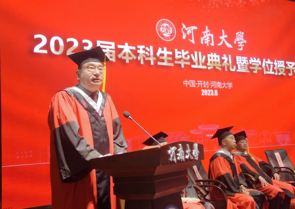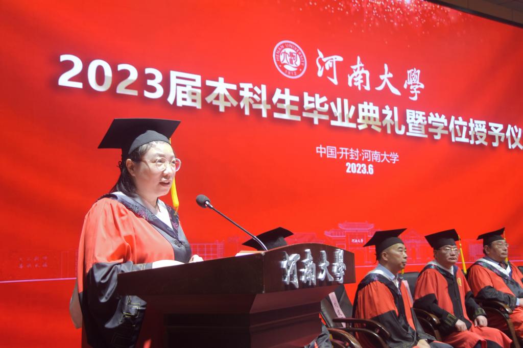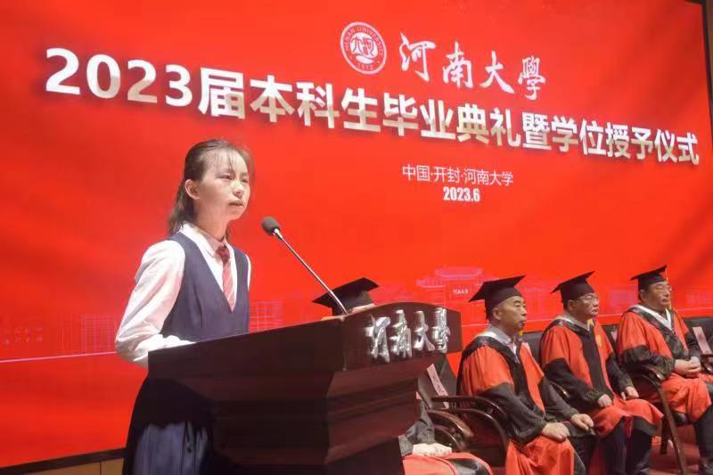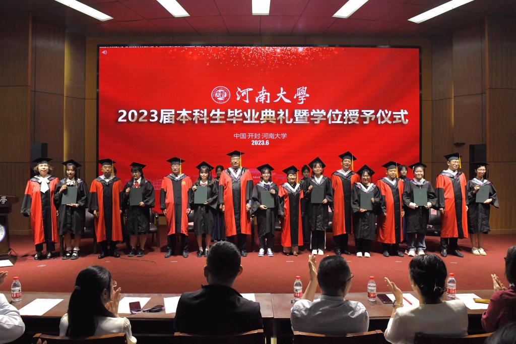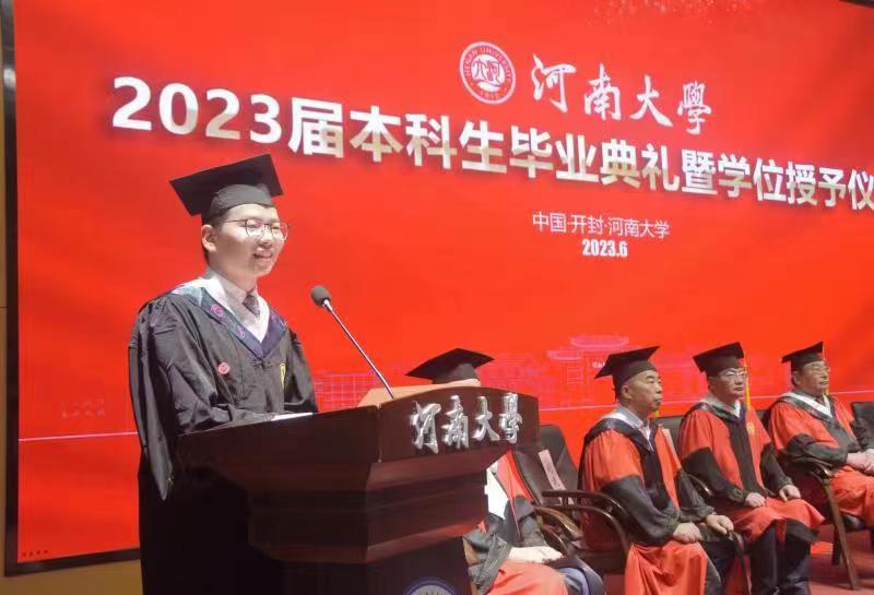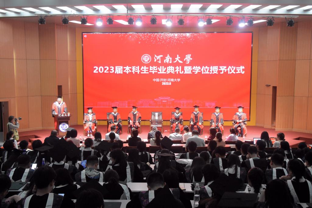 “嵩岳苍苍,河水泱泱,中原文化悠且长……”全体师生齐唱《河南大学校歌》,临床医学专业2023届毕业典礼暨学位授予仪式在歌声中落下帷幕。
