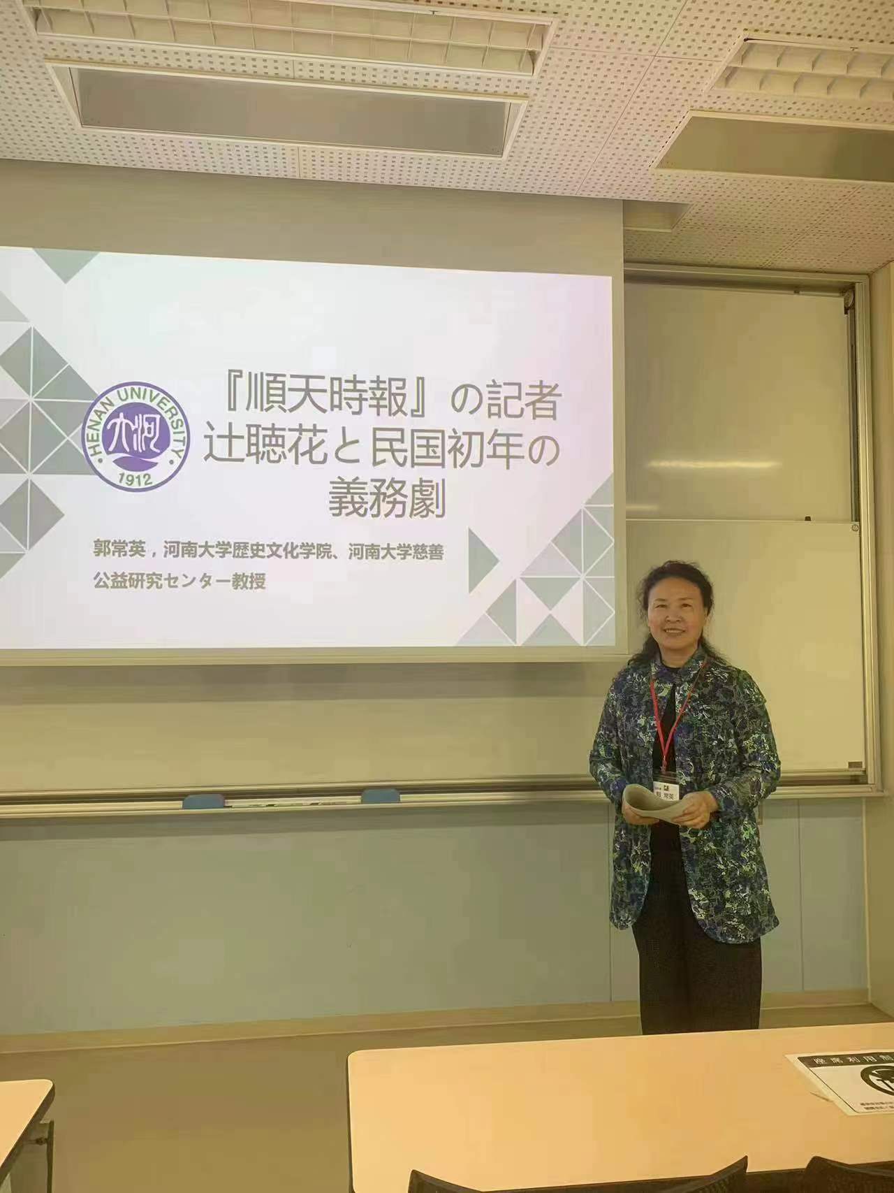 郭常英教授以“《顺天时报》记者辻听花与民国初年的义务剧”为题目,在第3分会场进行报告,并就辻听花与北京义演、传统慈善在现代中国的继承等问题与参会日本学者进行了深入交流,受到与会学者称赞与认可。