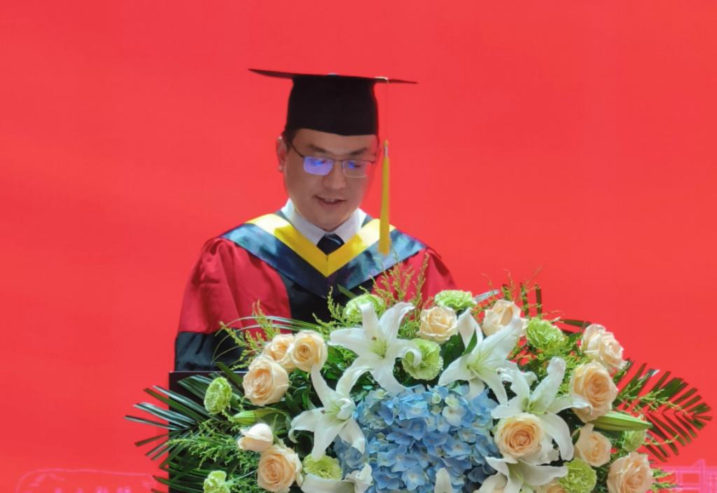 学院党委书记尹猛向毕业生们表达了最衷心的祝福和希望,对每一名AI学子四年来取得优异成绩表示认可,赞赏各位毕业生在学院创业发展过程中作出的贡献。最后,尹猛代表学院向2023届毕业生提出三点嘱托:一是做一个有梦想的人,永怀赤子之心,忠于信念,坚持不懈;二是做一个内心强大的人,从容豁达,懂得在困境中磨练心智,在顺境中强化忧患意识,在平淡中把生活过得有滋有味;三是做一个有深度的人,不忘初心、保持真实,在工作和生活中真正思考什么是人生价值,追求有意义的人生目标。