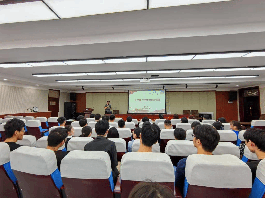 刘闯以“论中国共产党的自我革命”为主题给大家上了一堂立意深远、思想深刻的专题党课。从百年党史中最具历史意义的六次自我革命讲起,理论和实例相结合,深度讲解了党的自我革命的重要里程和伟大意义。聚焦“什么是共产党员”,用实例和小视频为同学们展现了当代共产党员的坚定意志和理想信念,表示共产党员就是大家前进路上的理想追求,就是大家困难面前的责任担当。同学们纷纷表示,此次党课内容深刻生动,深深感受到作为一名共产党员的神圣职责和伟大使命,要坚定不移听党话、跟党走,怀抱梦想,脚踏实地,让青春绽放绚丽之花。