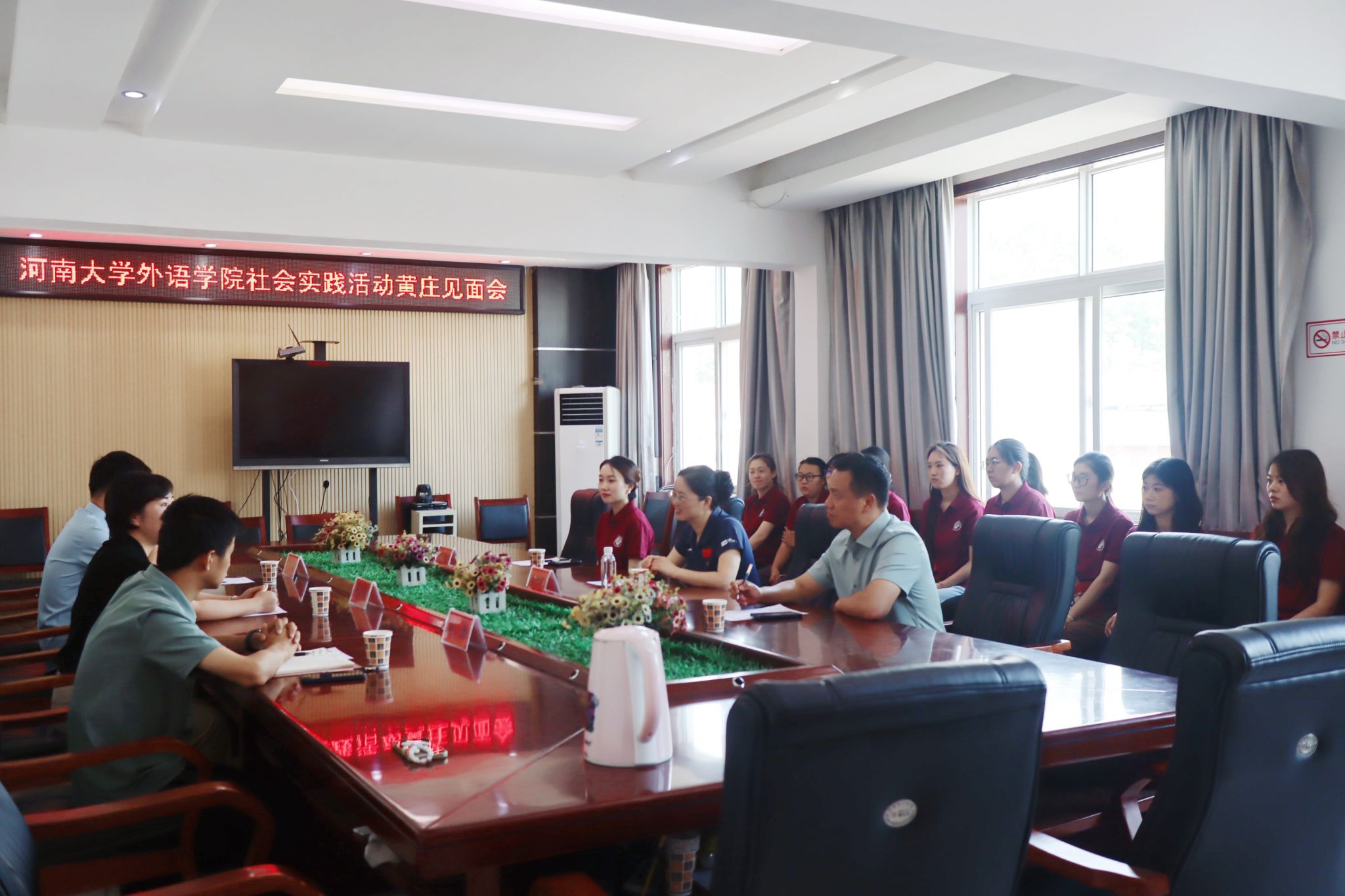 在黄庄乡政府,外语学院师生一行与黄庄乡乡长王晓燕、党委副书记李拓拓、团委书记高超围绕红色文化传承、校地合作等话题展开深入座谈。作为河南大学校友,王晓燕回顾了嵩县与河大在抗战办学、脱贫攻坚等时期的渊源,强调河大对当地教育、医疗事业的推动,以及在干部培训、农产品合作等方面的互动。她鼓励实践队深入体验,投身基层、奉献青春,在乡村土地大展身手。