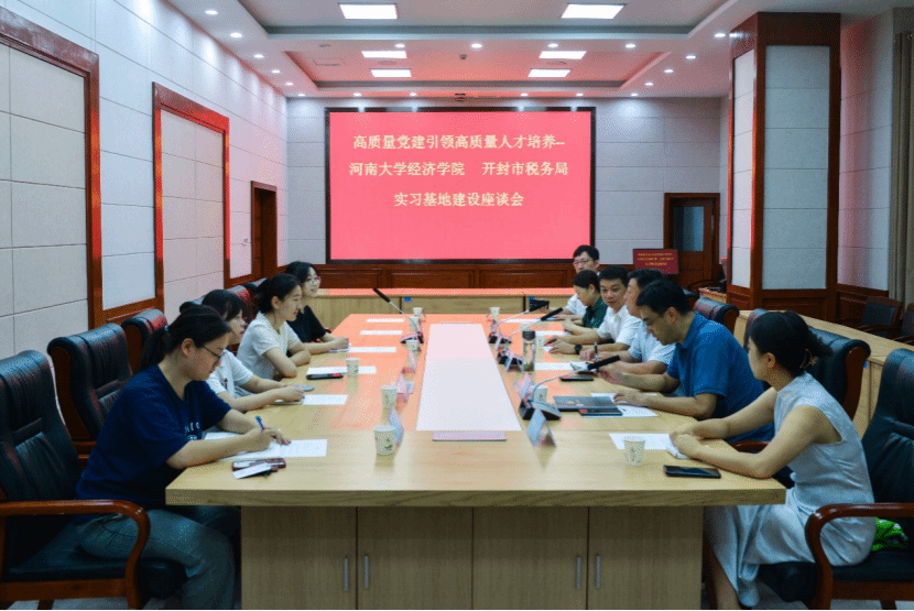 为进一步深化教学与实践相融合,增强本科生的综合素质能力,经济学院与开封市税务局共同展开以“高质量党建引领高质量人才培养”为题的座谈会,并参观了实习基地,深入了解具体实习情况。