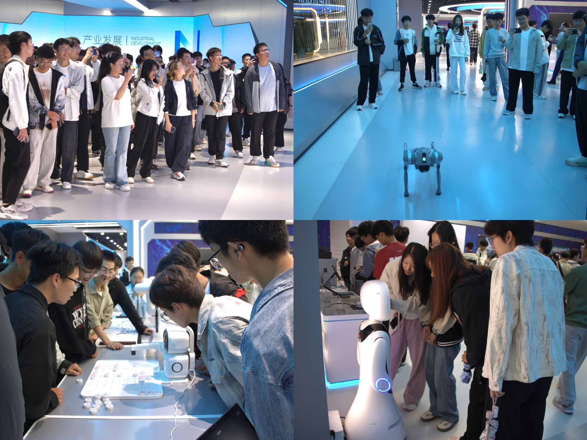 在中心展馆内,新生系统了解郑州数字化创新企业的产业布局、发展规模及先进技术,感受到国家数字化转型活力的同时也更加激发了探索数字科技、投身AI领域的兴趣。