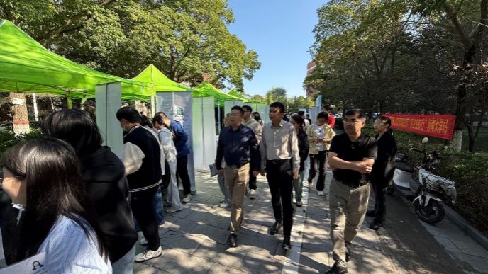 会后,与会人员共同参观了在经济学院门前广场举办的现场招聘活动。招聘现场人头攒动、气氛热烈,学生手持提前精心准备的简历,穿梭在各个招聘企业的展位前,驻足浏览招聘岗位信息,与招聘负责人进行深入交流。用人单位通过企业展板、宣传册、政策小红书等方式,结合现场讲解,全面向感兴趣的学生介绍企业单位的发展历程、文化建设、岗位职责及职业发展等。