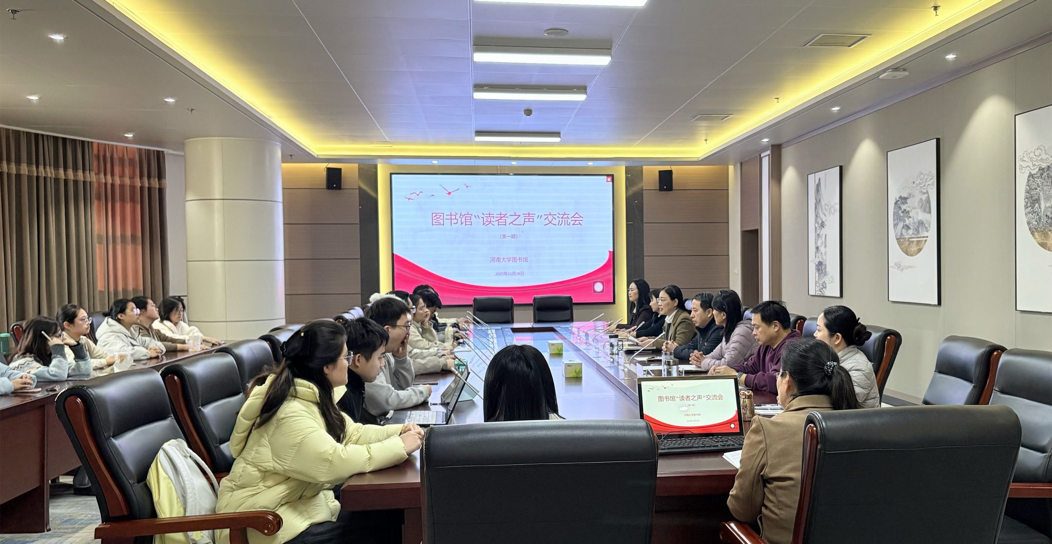 会议结束后,参会学生代表纷纷分享了他们的感受与体会。经济学院的研究生张同学表示:“这次交流会特别有意义,图书馆的各位领导老师直接回答学生遇到的问题,这种形式非常好,这不仅解决了我们的实际问题,更让我们感受到了图书馆愿意倾听的真诚态度。以后还可以考虑和学院合作定期举行,形成长效机制。”物理与电子学院的一位同学表示:“这种‘面对面’的形式非常好,高效、直接。各部门主任都在场,很多问题可以当场得到专业的解释和答复,避免了信息在传递过程中的误解和延迟。希望这样的活动能定期举办,成为图书馆和读者之间稳固沟通桥梁。”